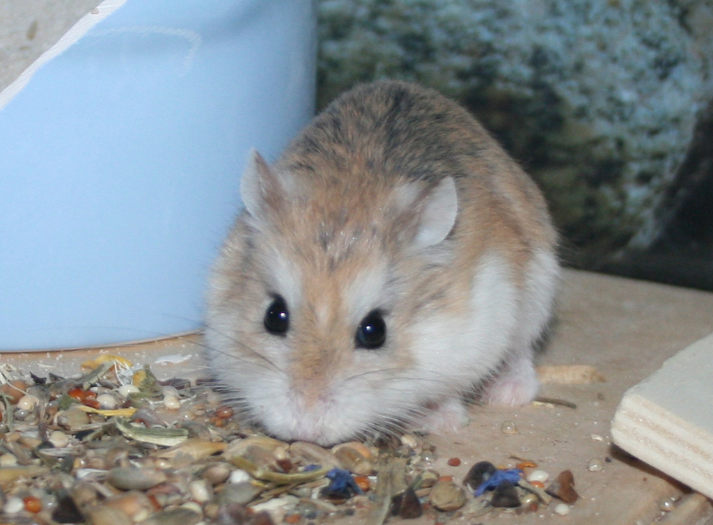 Freddy zog am 31.07.2016 aus einem Notfall aus Hannover hier ein. Er hatte schon am Bauch einen Tumor, den die Vorbesitzer gar nicht bemerkt hatten. Freddy hat die Tumor-OP gut überstanden und kann nun sein weiteres Hamsterleben bei uns verbringen, was er auch mit Vergnügen tut..