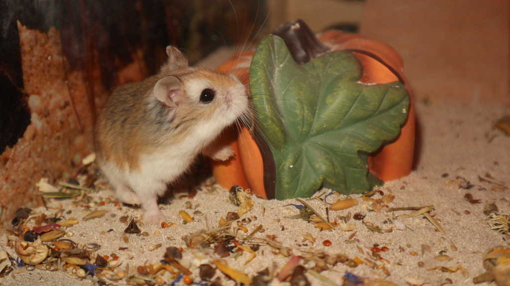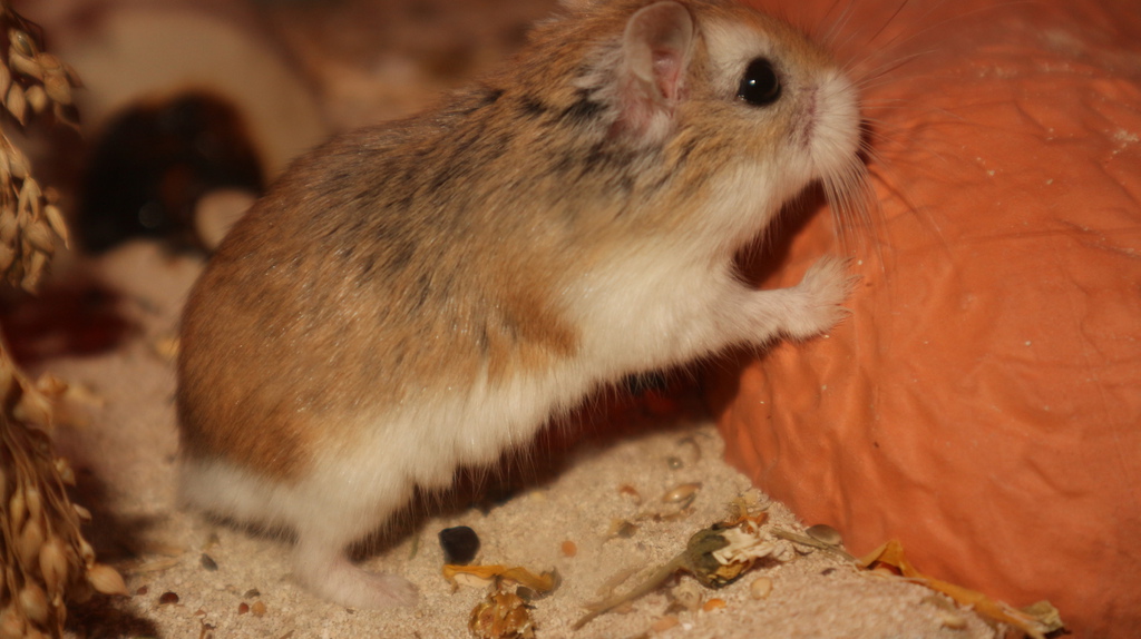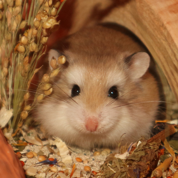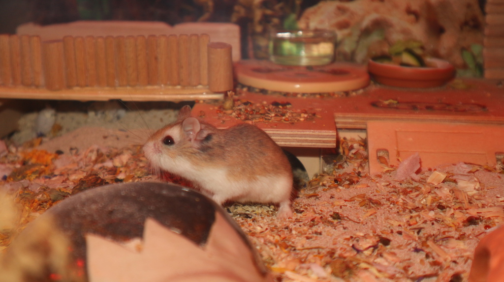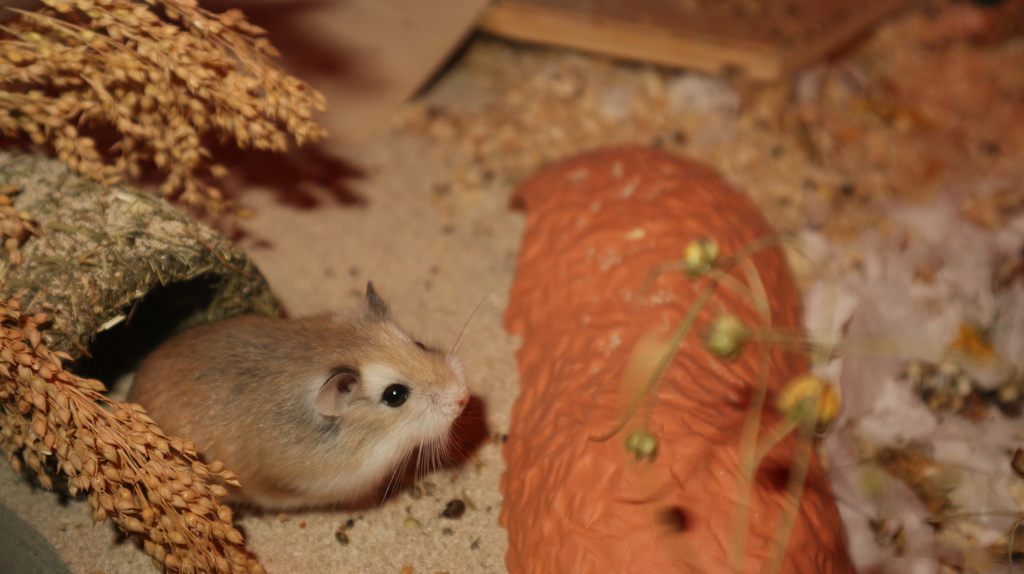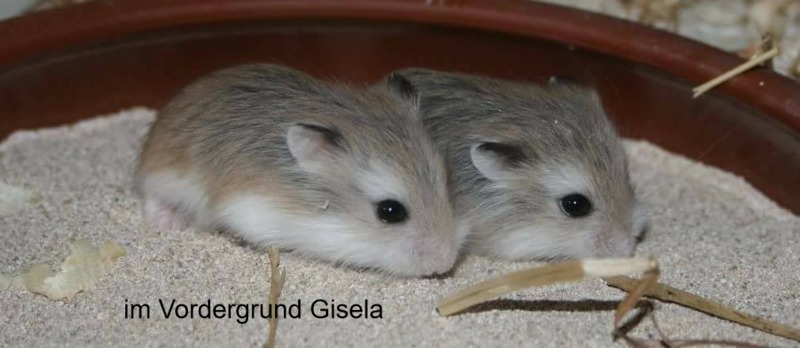Rüdiger kommt aus einem Notfall in Ostfriesland. Eine nette Hamsterliebhaberin hatte die Mama von Rüdiger in den Ebay-Kleinanzeigen gesehen und aufgenommen. Nach kurzer Zeit stellte sich heraus, dass die Kleine nicht alleine gekommen ist. Plötzlich waren 7 kleine Robos da. Sie konnten alle vermittelt werden. Der kleine Rüdiger hat nun bei uns ein neues Zuhause gefunden. Rüdiger kam eigentlich als kleine Gisela zu uns. Nach einiger Zeit entpuppte sich das kleine Roboweibchen als Robomännchen. Machte aber nichts. Hauptsache Robo :-)